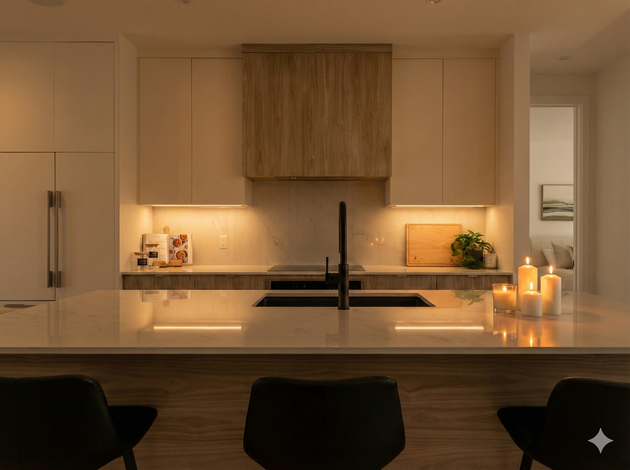 Conçue pour maximiser le confort et la convivialité, la LEVÄ met en valeur une cuisine spectaculaire dotée d’un îlot surdimensionné, véritable centre de rassemblement pour cuisiner, recevoir et partager.